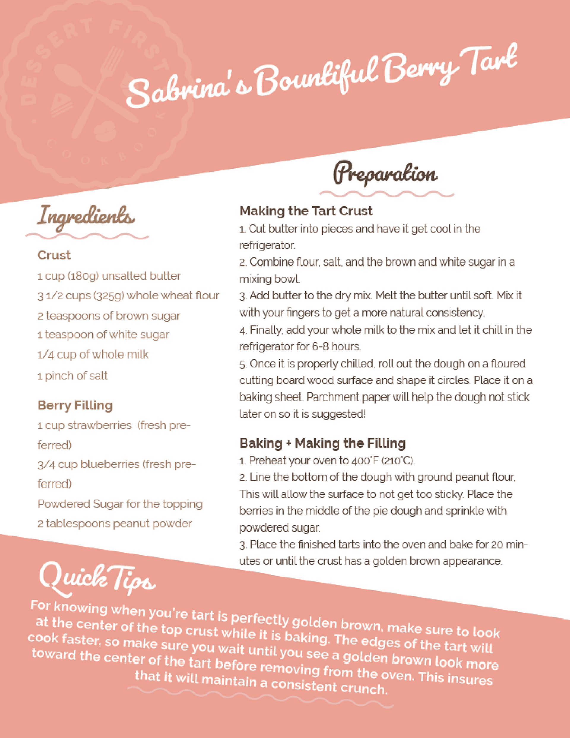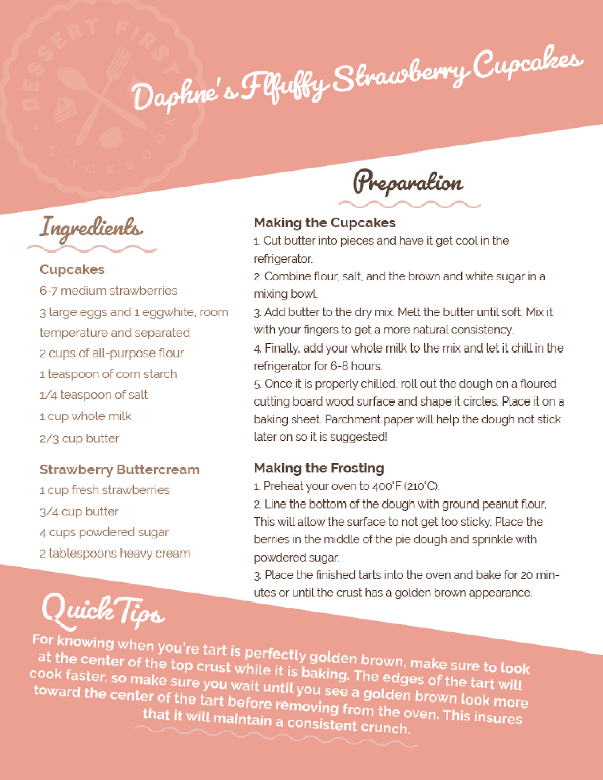 Sample cookbook design, Dessert First.