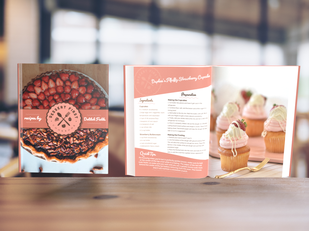 Dessert First Cookbook Layout Design and Mockup