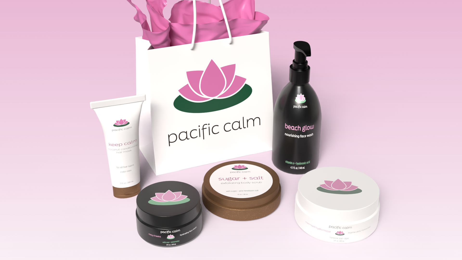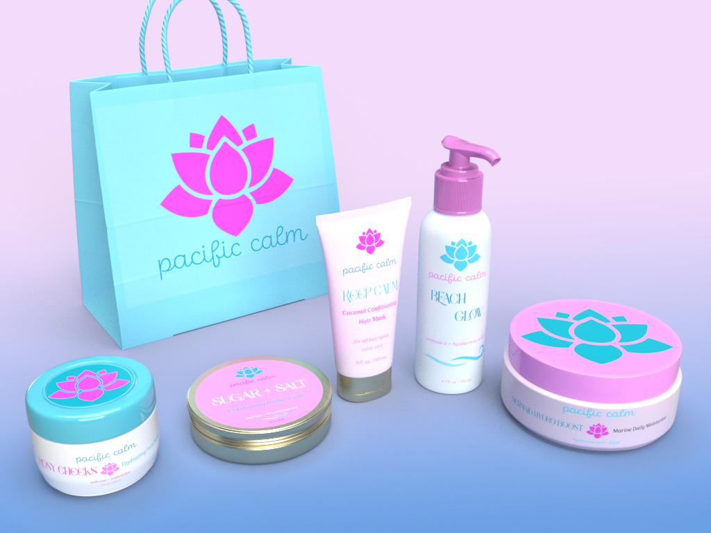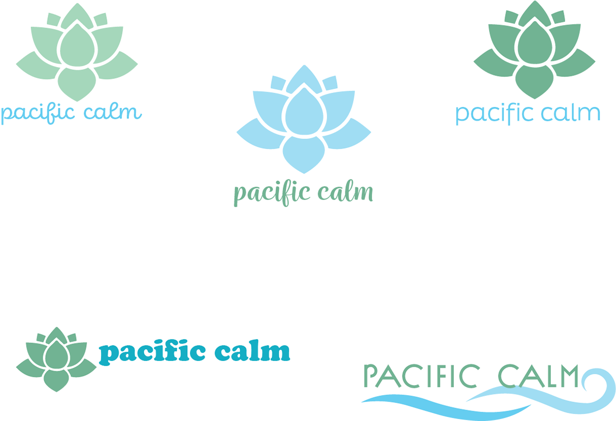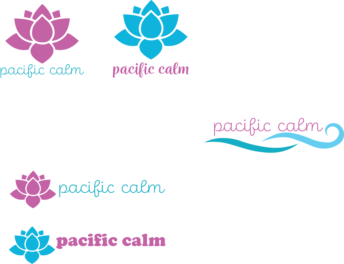 Redesigned logos and packaging designs for mock brand, Pacific Calm. Designed with accessible color palette.