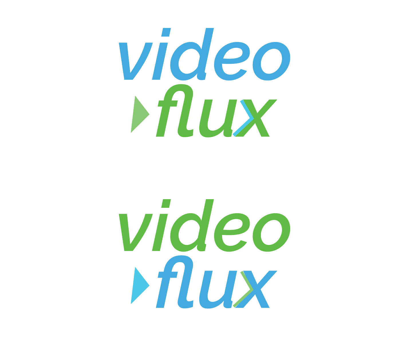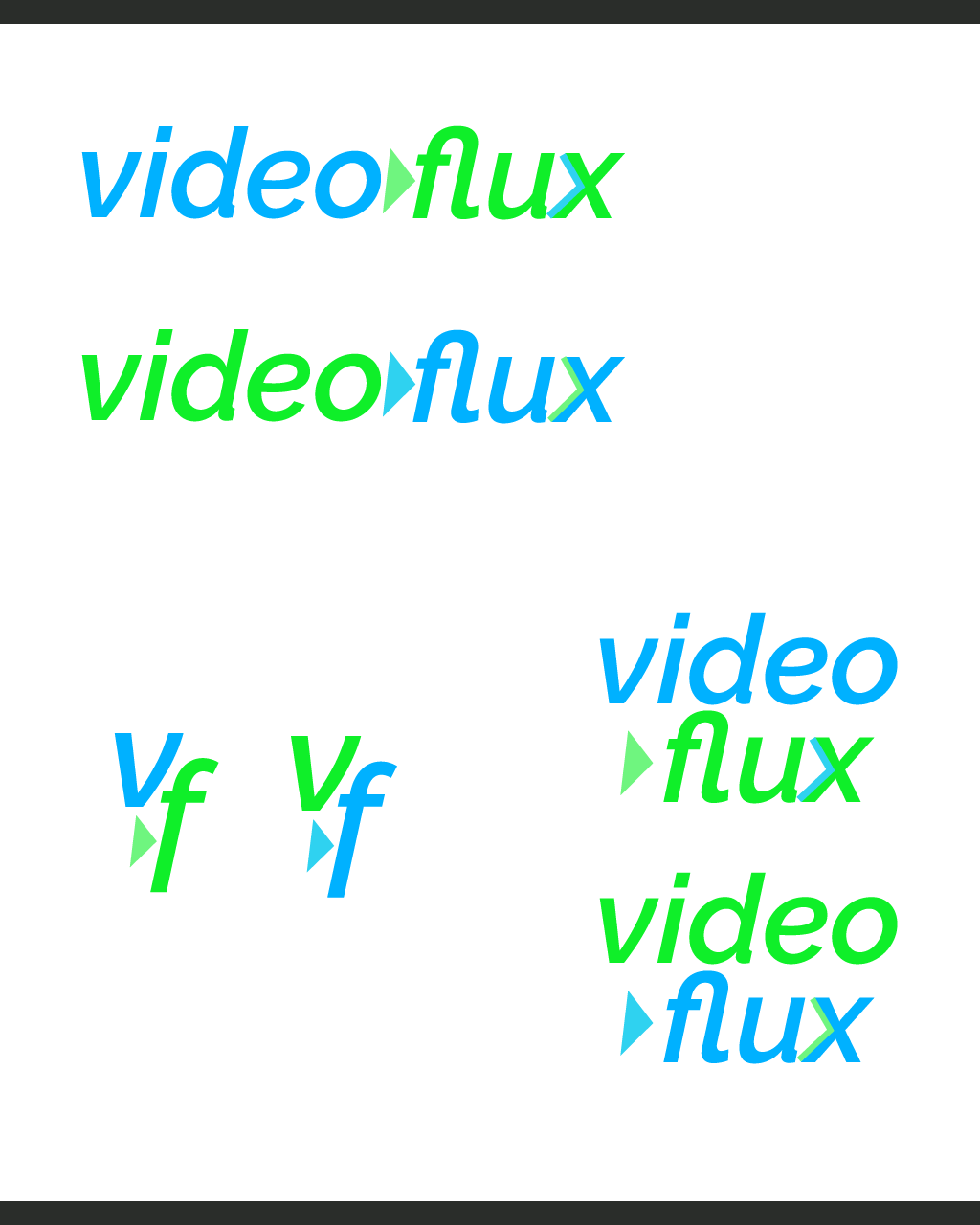 Updated logos and branding presentation for mock brand, Video Flux.